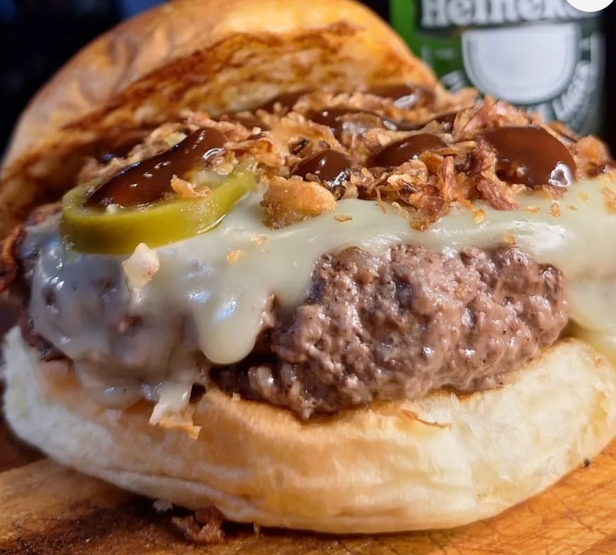 Pão de brioche, hambúrguer de 200g, queijo gorgonzola, cebola crispy, jalapeño pikles e molho BBQ.
